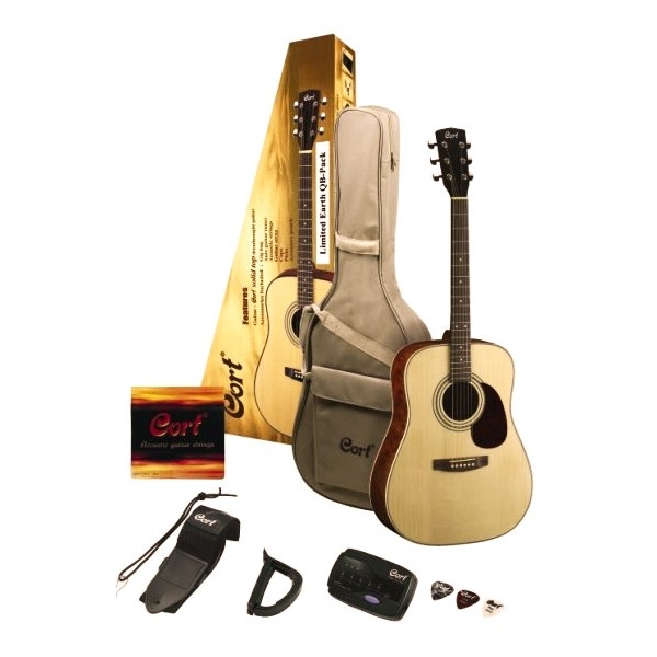 by Cort GuitarsAkustična Gitara Cort Earth Pack je uredno i lepo zapakovana u svom paketu i čeka na vas. Gitara je odlične izrade u što se možete uveriti kod nas u radnji a namenjena je od početnika koji žele odličan kvaletet instrumenta do profesionalaca. Odličan izbor cena-kvalitet i naravno paket koji ide uz gitaru...