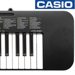 by CasioCasio CTK-240 klavijatura sa 49 dirki (4 oktave) i idealna je za kombinaciju zabave sa ozbiljnim učenjem. 100 boja, 100 ritmova i 50 pesama za vežbu. Casio CTK-240 je osnovna klavijatura elegantnog dizajna u crnoj boji.