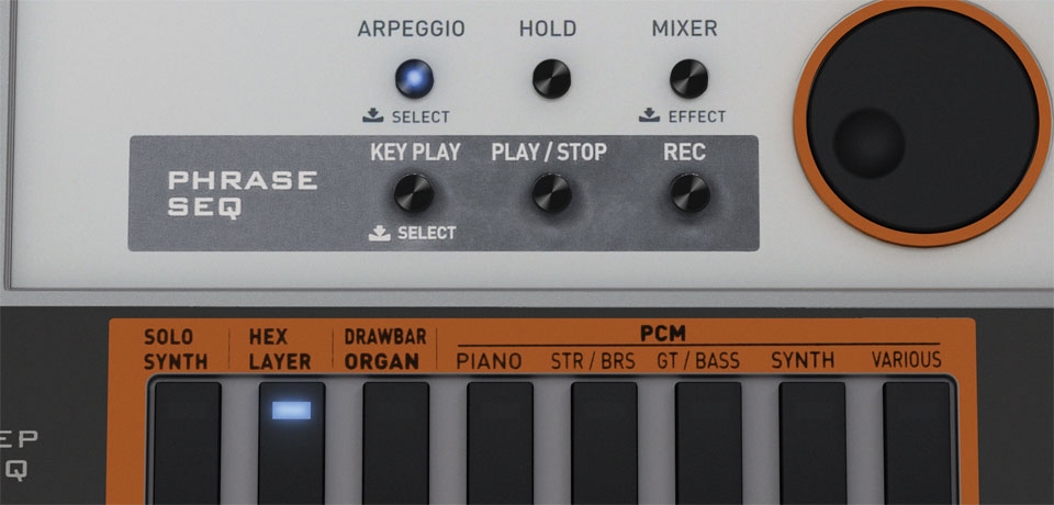 Phrase Sequencer lets users create and play back musical phrases that spice up DJ performances • 100 musical phrases can be readily played back using the preset phrases • Up to 100 musical phrases spontaneously played on the keyboard can be stored in memory as user phrases Useful functions bring out the best in live performance • A multifunction keys enables users to assign essential functions for DJ performances to keys • 420 preset tones including Solo Synthesizer and PCM tones can be quickly accessed in keyboard performances • The Arpeggio function can automatically play arpeggios just by pressing keys