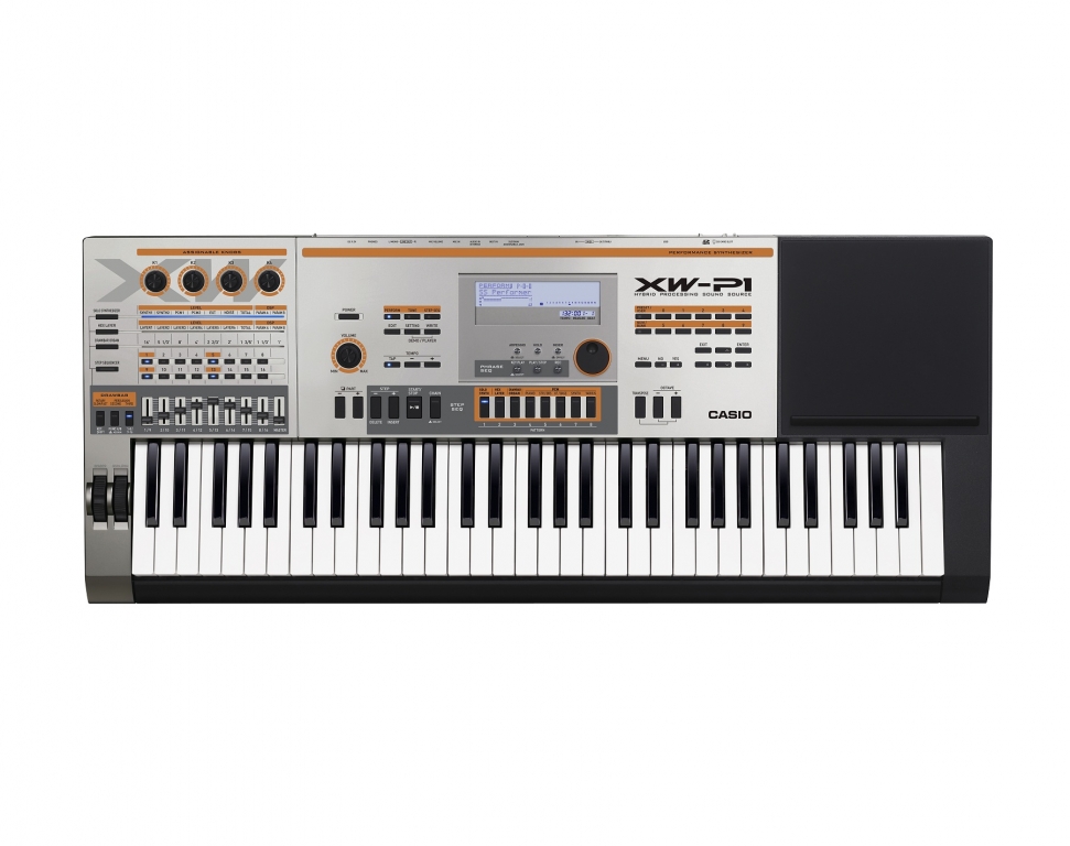 by CasioCASIO XW-P1 is a synthesizer that lets users enjoy many of the features club DJs use on their digital equipment. The functions of various DJ gear are included in this all-in-one unit, including its Step Sequencer for selecting an array of rhythm patterns, Phrase Sequencer offering preset phrases that spice up DJ performances, and Sample Looper for digitally sampling rhythm patterns, keyboard performances, or externally input sound allowing overdubbing. Using the built-in 61-key keyboard, users can not only play the keyboard live while using rhythm patterns as backing tracks, but can also use the keyboard to call up features quickly while DJ-ing, giving them real-time control of the instrument’s cool club sounds.