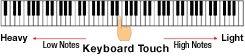 - Hall effect button (at the touch of a button, concert hall reverb can be applied to the sound of the keyboard)