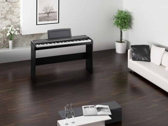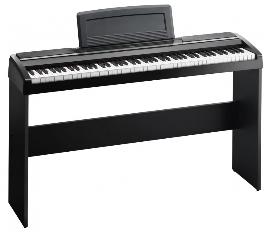 * A total of ten sounds are provided, including electric pianos, harpsichord, organs, strings, and more. * Our new Natural Weighted Hammer Action (NH) faithfully reproduces the touch of an acoustic piano. * The Key Touch Control offers three levels of sensitivity to match the keyboard response to any playing style. * The SP-170's compact body houses a robust, built-in speaker system to deliver a deep and powerful sound. * Reverb effect adds depth and spaciousness to the sound; Chorus adds warmth and motion. * Two headphone jacks allow for parent/child or student/teacher private practice, or for just sharing with friends * Damper pedal and music rest complete the SP-170 * Available in either black, white, or the limited edition red to complement any environment * Matching wooden stands are available (optional) to complete a home piano look when desired