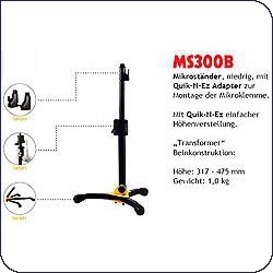 by HerculesHercules MS300B stalak za mikrofon malih dimenzija zgodan za ozvučavanje pojačala ili bass bubnja ili HiHat\'a. Zbog malih dimenzija, lagan je i pogodan za nošenje. Metalni delovi imaju lakirani finiš. Stalak u odnosu na svoje dimenzije je jako stabilan i dizajnerski lepo osmišljen.Ovi stalci se primenjuju širom sveta i jako su popularni šro se tiče izrade.