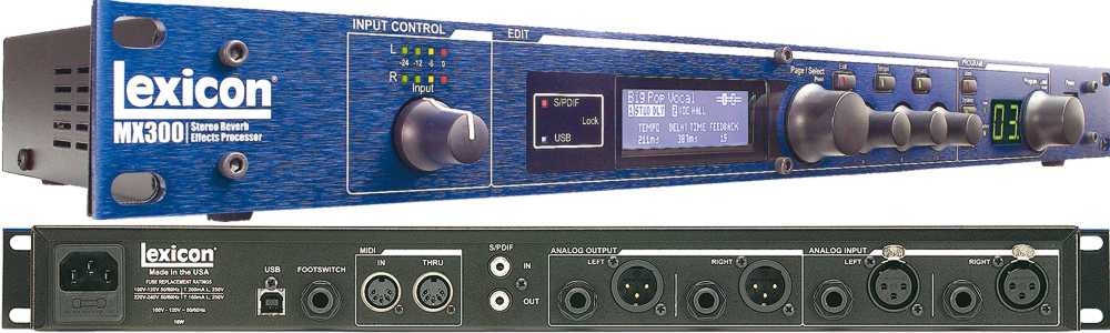 by LexiconStereo Reverb/Effects Processor sa USB “Hardware Plug-In” kompatibilnošću.Dizajniran za live sound pojačanje i snimanje.MX300 odikuje bogat reverb i ostali efekti koji su pojačani dbx dinamikom.Poseduje 32 efekta koje možete modifikovati po želji na kontrolnoj tabli sa potenciometrima.Ovo su legendarni uredjaji kompanije Lexicon i reči hvale su samo suvišne jer ovaj uredjaj stvarno radi posao u visokoj klasi.
