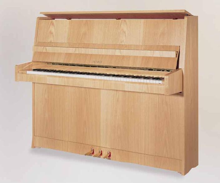 by PetrofP116 E1 je najmanji uspravni pianino srednje serije. Zahvaljujući svojim karakteristikama, posebno je namenjen za učenje i potrebe obuke. Ovaj pianino je jednostavnog oblika i pogodan je za male prostorije. DImenzije: a-542 mm 21,34 "; b -1160 mm* 45,67 ", Širina - 1435 mm 56,50 "; Težina - 199 kg· 438lrb