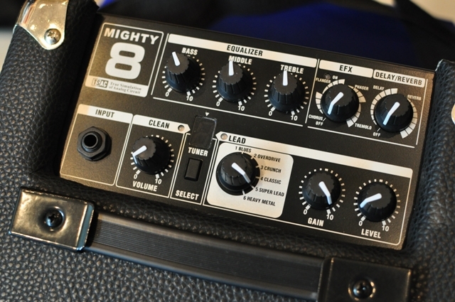 by NuxPojačalo NUX Mighty 8 (novo na nasem tržištu). Pojačalo ima 8W RMS i naoružano je svim efektima: Chorus, Flanger, Phaser, Tremolo, Delay i Reverb, odvojeni "Delay" and "Reverb, kao i digitalni štimer. Pogodno je za nošenje jer ima svega 3.9 Kg i može raditi na baterije. Uz pojačalo ide ispravljač i kaiš.