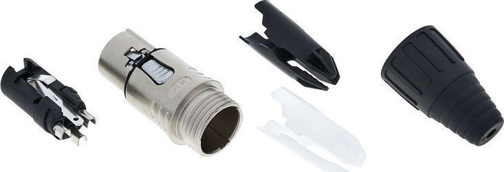 Seetronic SCSM3, high-quality 3-pin XLR plug, male, solder contacts, anti-kink sleeve, collet strain relief, silver metal housing and black grommet, silver contacts